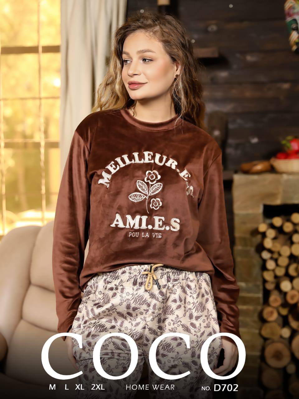 بيجامه حريمي قطيفه هايدي وشين 🩵